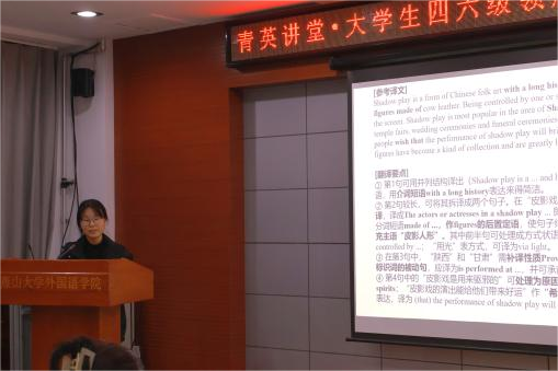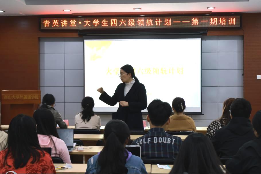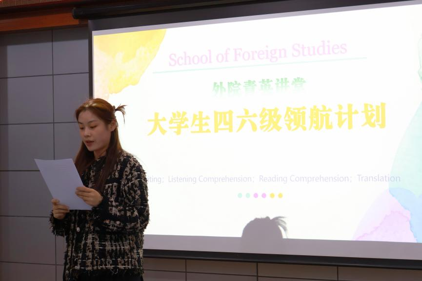 为提升外院学子的四六级授课能力,更好地为广大学子提供四六级考试指导,4月21日晚19:00,由外国语学院研究生会主办、外国语学院科学与技术协会协办的大学生四六级领航计划第一期培训于东区人文馆416成功举办,本场培训特别邀请到李继燕、曲炎、边雅和杨金丹四位英语专业教师,活动由院研究生会执行主席裴盈盈主持。