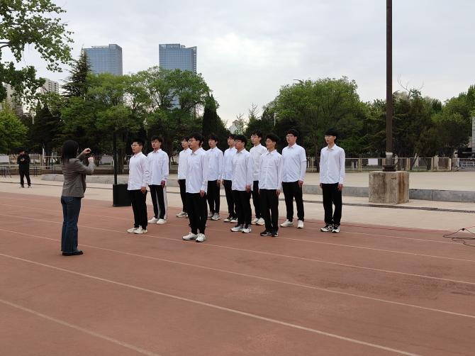 在西校区电气学院广场,西里西亚学院合唱团全体成员以肃穆而激昂的姿态,与全场同学共同演唱了歌曲《不忘初心》。歌声高亢嘹亮,充满了对党和人民的深厚情感。歌声传达了西里西亚学子对党和人民的崇高敬意和坚定信念,彰显了学子们坚定不移跟党走的使命和决心,为微凉的清晨增添了一抹庄重的暖意。