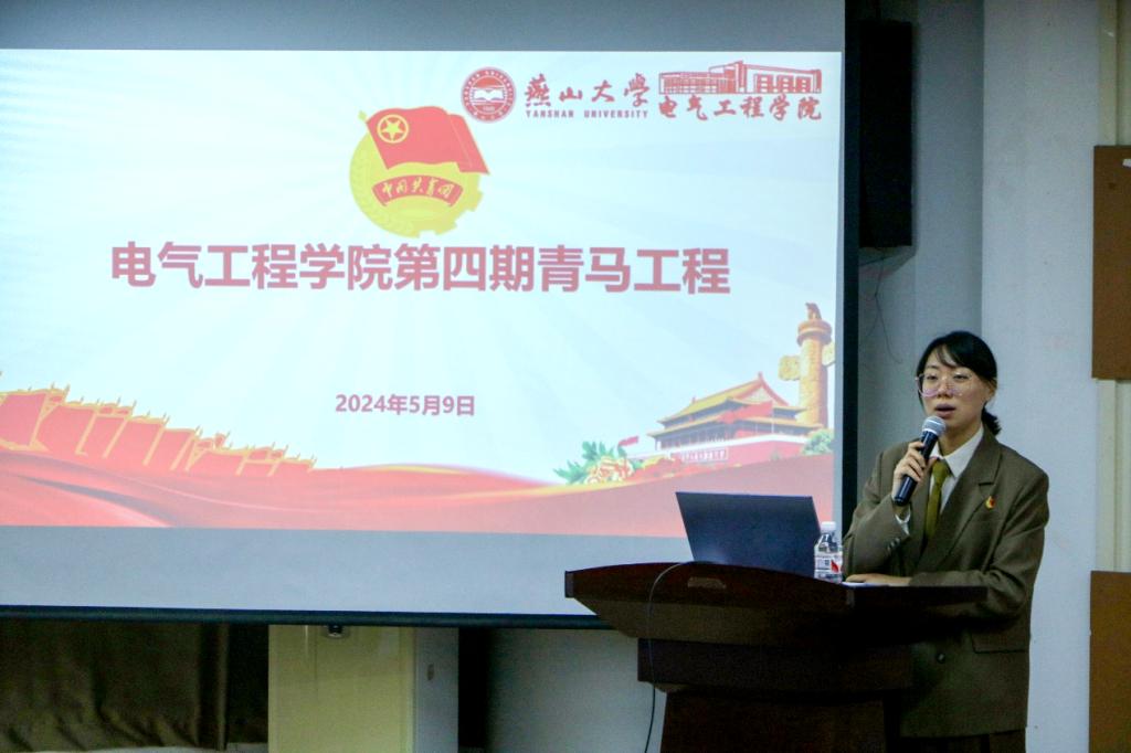 为弘扬五四精神、磨砺青年学子家国情怀和担当意识,5月9日下午,电气工程学院举行第四期“青马工程”开班仪式暨第一次授课。开班仪式由电气工程学院团委副书记赵雨桐主持,第一次授课由马克思主义学院教师胡凯丽主讲,第四期“青马工程”全体学员参加学习。