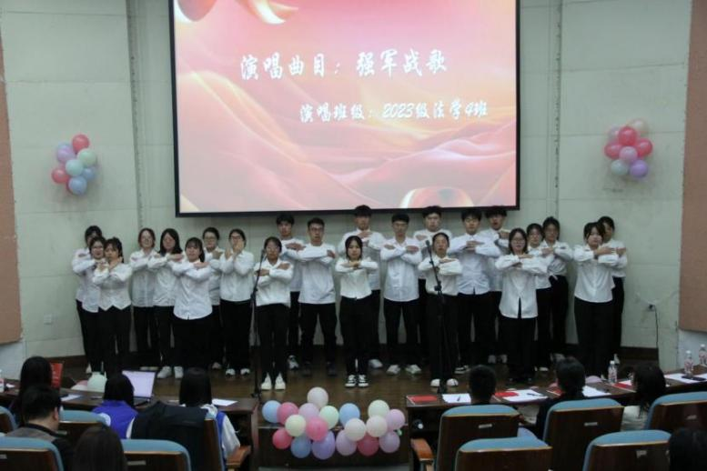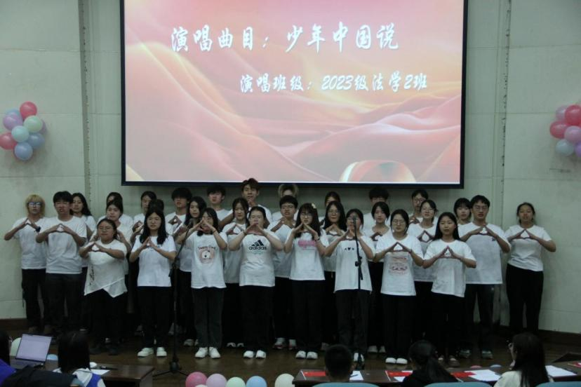 本次比赛共有12个班级进入决赛。比赛中,各参赛班级热情洋溢地唱响红色歌曲,充分展现了燕大青年的爱国之情。2022级硕研2班演绎《如愿》,鲜艳的彩带挥舞出龙的脊梁,展示了泱泱中华虽历经无数沧桑,仍迎风翱翔;2023级法学4班唱响《强军战歌》,正是一支支用纪律、血性和信念武装的部队筑成了坚如磐石的钢铁长城,铿锵有力的声音激起全场观众报国之热血、筑梦之雄心;2023级硕研3班歌唱《我和我的祖国》,旋律婉转悠扬,情感真挚动人,表达着青年学子对祖国母亲深沉的爱;2023级法学2班带来《少年中国说》,意气风发,点燃了全场青年学子的报国之志;2023级公共管理类2班演唱《万疆》,以满腔的爱国情怀,用歌声为祖国献礼,吾国万疆,大爱无疆;2023级汉语言文学4班献唱《有我》,燃起满腔热血,斗志昂扬。忆往昔,犹记中国青年百年奋斗峥嵘路;看今朝,应有万千热血逐梦追光之担当;展未来,当往皓月星辰初心不忘之方向。