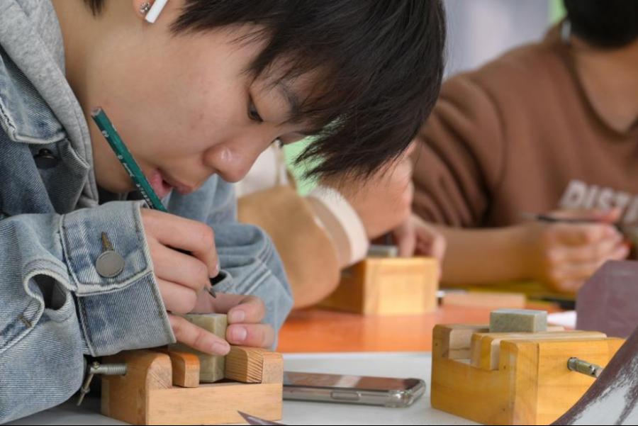 4月27日—5月10日在“寓”见美好工作站,学院研究生会、燕鸣军工艺术团、篆刻协会、民间印象手工坊等多个组织和社团开展“正青春‘艺’起来体验”美育系列活动。“基础白文篆刻实操”“灼灼金箔贴箔画艺术疗愈”“大音希声趣味口部操练习”“仪路生花舞台妆容训练”“艺”起来歌舞等活动吸引百余名学生参与。进一步增强同学们感知美、鉴赏美、创造美的素养,营造了良好的校园文化氛围。