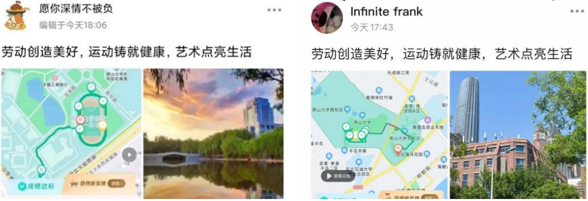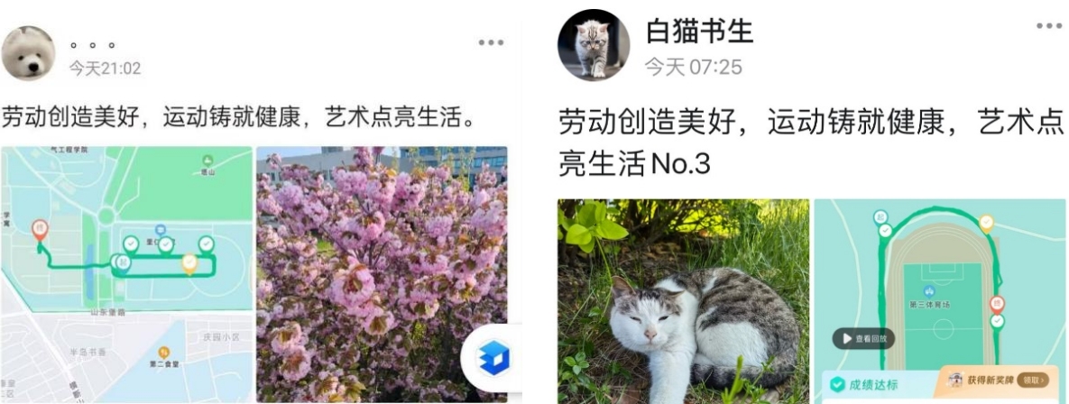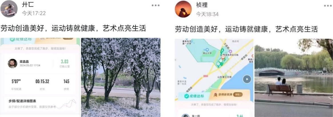 此次活动规则简单易懂,同学们在QQ空间晒出自己的跑步记录以及在跑步过程中拍摄出精彩绝伦的校园照片,附上“劳动创造美好,运动铸就健康,艺术点亮生活”。