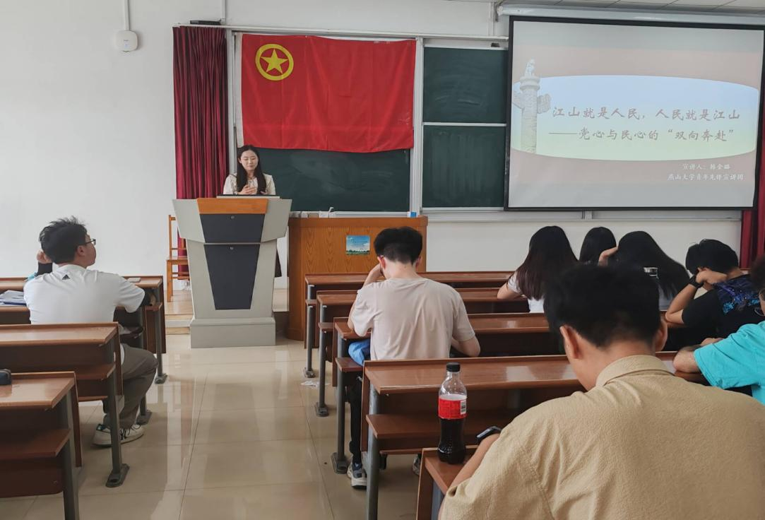韩金璐同学宣讲的主题是《江山就是人民,人民就是江山——党心与民心的双向奔赴》。实实在在的发展成果,夯实着人民群众的获得感、幸福感、安全感,也不断加强着党心民心的互动与共振。作为青年学生,我们要通过各种渠道关注党和国家大事,将个人理想、个人追求融入时代主题、汇入复兴伟业。面对风险挑战、自然灾害、外部干扰,党和人民始终想在一起,站在一起,干在一起。这份珍贵“双向奔赴”,为推动国家民族浩荡前行提供了源源不竭的动力。