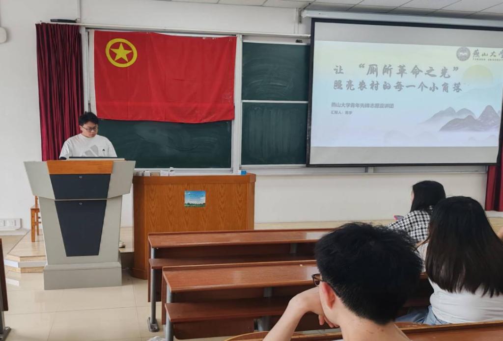 陈宇同学宣讲的主题是《让厕所革命之光照亮农村的每一个小角落》。倡导推进“厕所革命”,体现了习近平总书记对百姓民生、城乡文明的高度关切,彰显了从小处着眼、从实处入手的务实作风,为新时代实施乡村振兴战略注入了强大动力。建好的是小厕所,体现的是大文明。这场“革命”来的正逢其时、恰到好处,城市里、村庄中的那些最脏小角落正一个个转变为最美大风景。