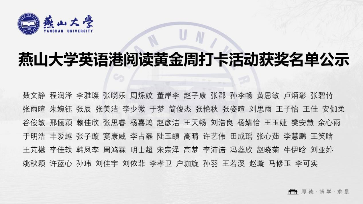 为了进一步提升全校学生的英语学习热情,构建一个活力四溢的学习交流平台,外国语学院英语港社团精心策划了“阅读黄金周”英语阅读打卡活动,活动于2024年4月19日至5月19日顺利进行。自活动启动以来,全校同学们纷纷响应,踊跃参与,共有763名学生报名参与,最终共426名学生顺利完成,充分展现了我校学生对英语阅读的热情。
