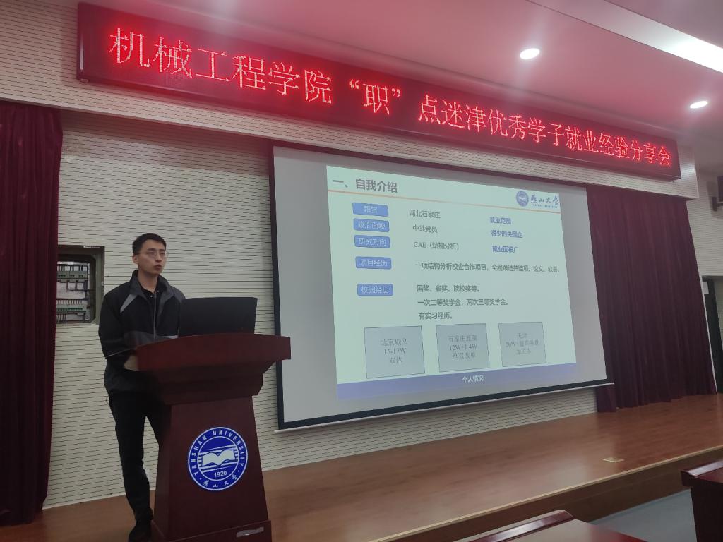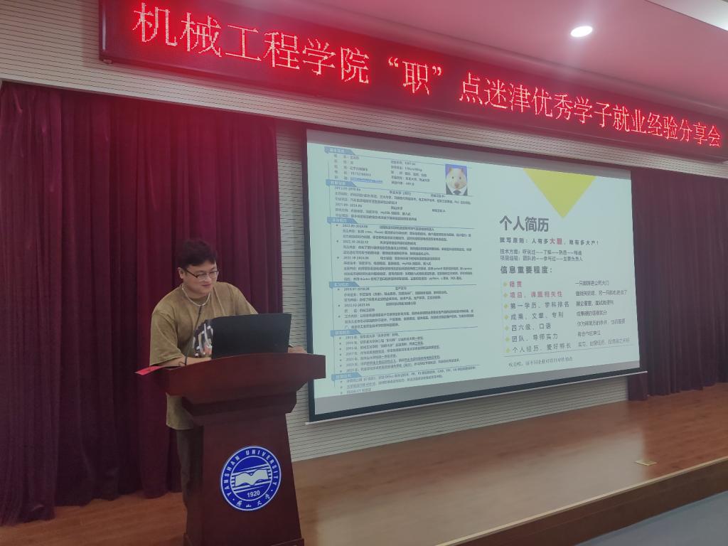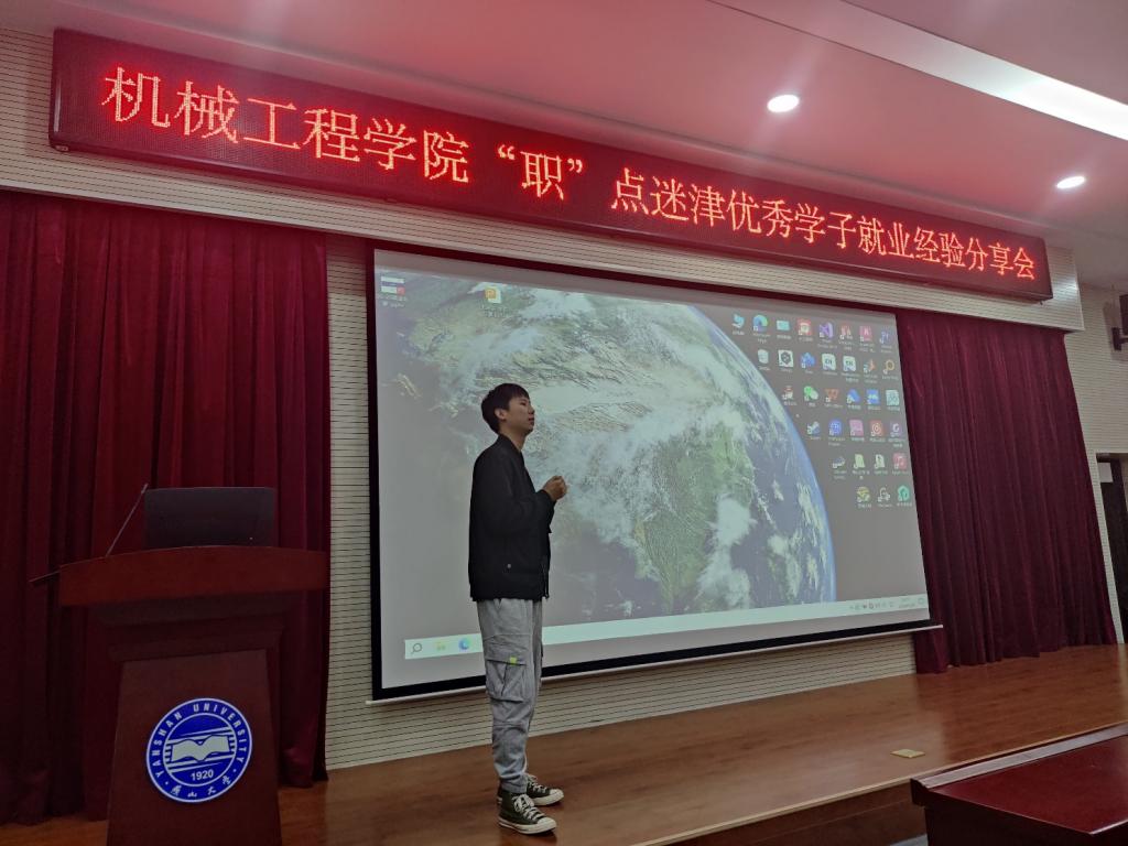 为帮助学院研究生更好地了解就业前景,明确就业方向,树立正确的就业观和择业观,由学院团委主办,研究生会承办的“职”点迷津优秀学子就业经验分享会于2024年5月21日在机械馆J3室举办,本次活动由研究生会成员郭浩楠主持,2021级硕士研究生王泽坤、王庆东、于涛作为主讲嘉宾为研究生分享就业经验。