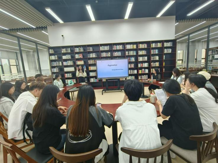 会议伊始,刘丽霞老师巧妙地将萧伯纳的经典剧本《卖花女》与改编电影《窈窕淑女》相结合,联系古希腊的皮格马利翁效应,通过深入浅出的方式探讨了中产阶级的道德困境、女性地位、以及语言与阶级之间的复杂关系。在刘老师的引导下,同学们不仅对这两部作品有了更深层次的理解,还沉浸于其中,领略了经典文学与电影相互交织的魅力。此次分享让同学们受益匪浅,不仅丰富了他们的文化视野,也提升了他们对艺术作品鉴赏的能力。