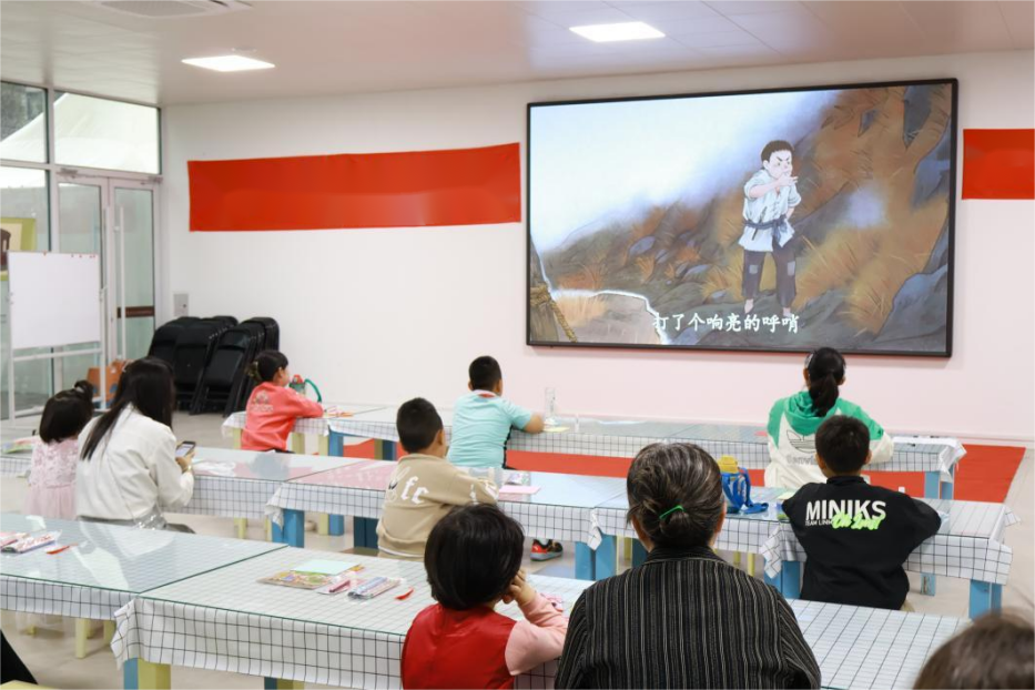 活动在红色小故事《鸡毛信》的播放中拉开序幕,生动的画面和感人的故事瞬间点燃了现场的气氛,小朋友们都聚精会神,十分认真。