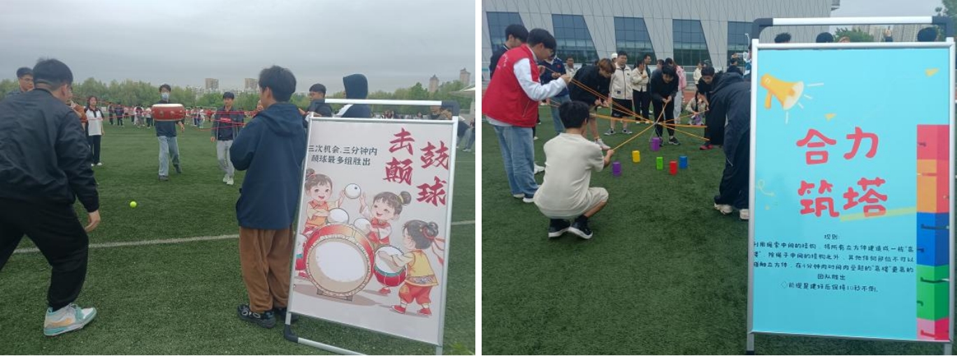 击鼓颠球、合力筑塔