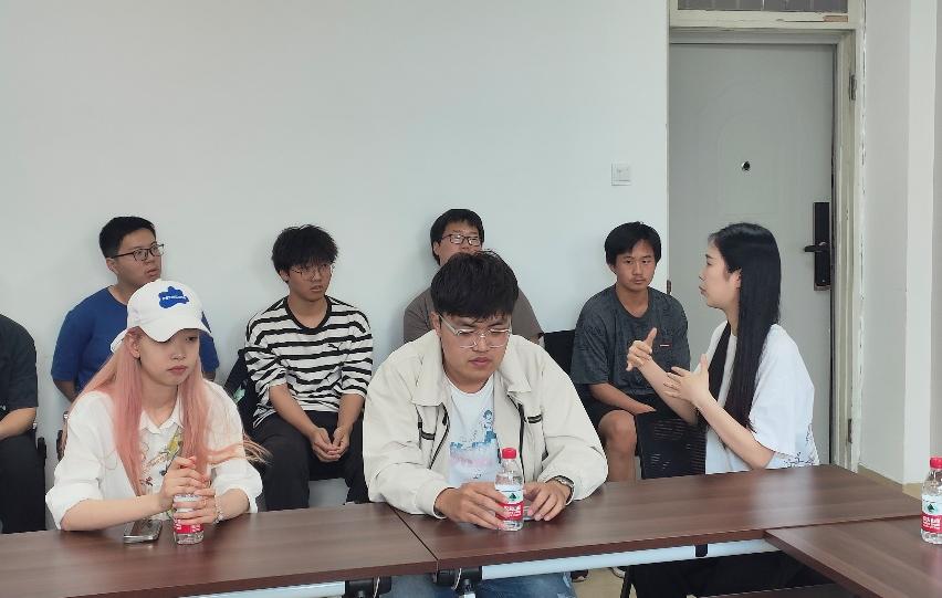 (辅导员冯海龙发言、石油工程系教师韩东颖发言)