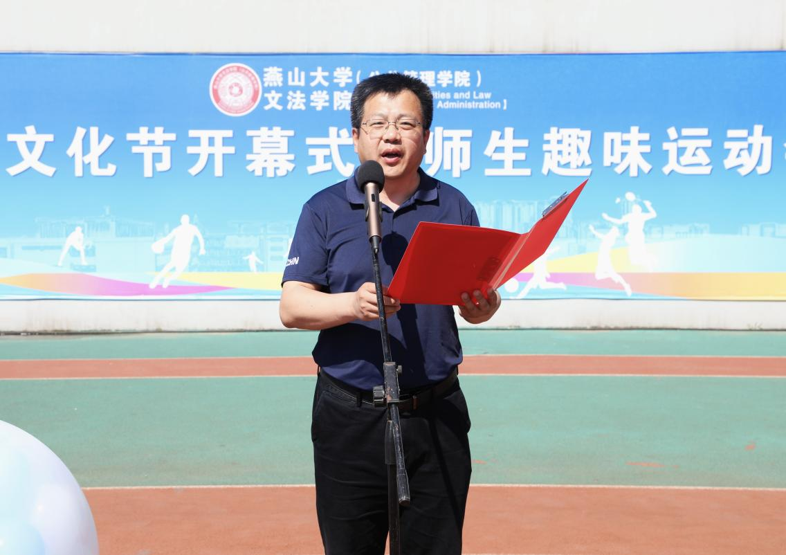 为深入贯彻落实体育强国战略,引导广大师生悦享运动快乐,以体育德、以体育智、以体育心,6月2日上午,文法学院(公共管理学院)在第二体育场举办体育文化节开幕式暨师生趣味运动会。校党委常委、副校长蔡星周,校团委书记段磊,学生工作处处长薛传佳,学院党委书记杨健民,院长丛鑫,副处级辅导员徐进出席活动。开幕式由学院党委副书记张玉华主持。