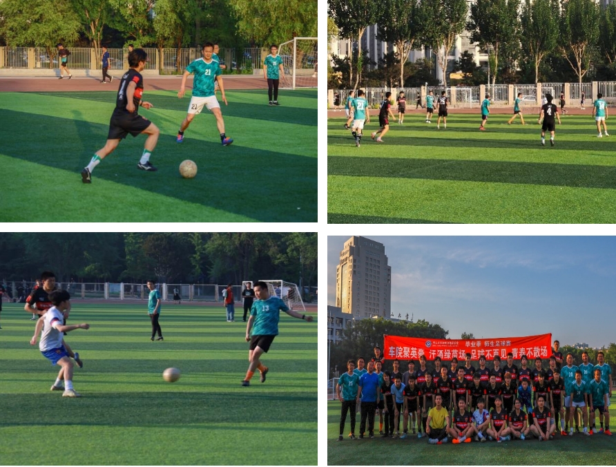 本次师生足球友谊赛共两支队伍,一支是由贾拓、王众、李洪庆等教师组建的教师队,一支是2024届毕业生组成的学生队。随着中场裁判一声哨响,双方球员就迅速进入状态,展开了激烈的角逐。精彩的射门、巧妙的传球和严密的防守让现场观众目不暇接,叫好声和欢呼声响彻球场。教师队凭借着丰富的经验和娴熟的技巧,迅速掌控了比赛的节奏,频频发起进攻。学生队也不甘示弱,他们年轻而富有朝气,用速度和力量与教师队展开对抗。双方球员在场上你来我往,场面十分激烈。结束后,双方球员互相拥抱,表示祝贺。这场别开生面的足球友谊赛,留下了一段珍贵的比赛记忆,更彰显了师生间的深厚情谊。车辆人将继续秉承着超越极限、团结进取的精神,以球会友,因球而聚,书写属于车辆足球的传奇。