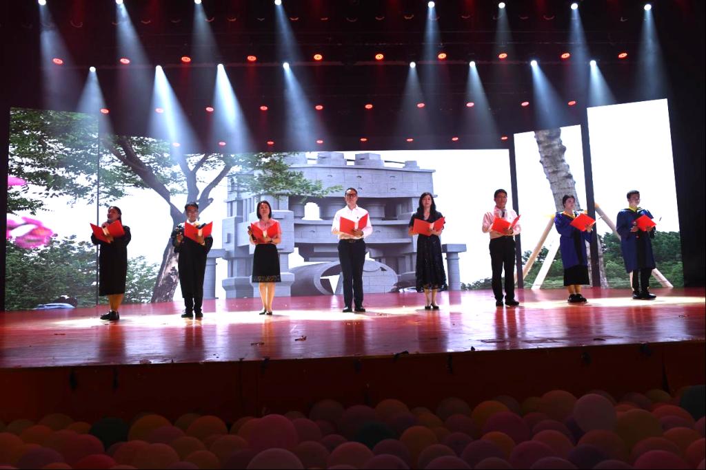 学校和学院领导合唱《我和我的祖国》,为即将奔赴山海、以青春报效祖国的2024届毕业生送上最美好的祝福。全体毕业生被激情感染,全场合唱,声音坚定有力,传递着对祖国的深情厚谊。