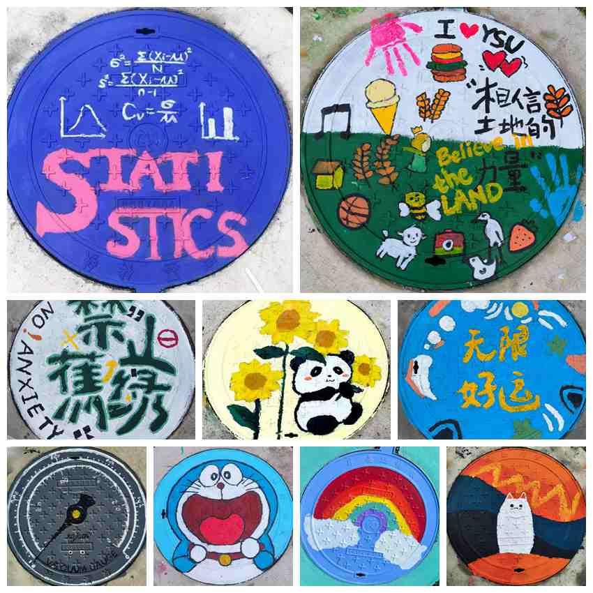 活动现场,学生们以井盖为画布,充分发挥自己的想象力和创作才能,用五彩斑斓的颜料绘制出各种有趣的图案。同学们利用靓丽的色彩、积极向上的文字、妙不可言的公式和同学们喜闻乐见的卡通人物,让原本灰暗的井盖立刻换了新颜,不仅为校园增添色彩,同时也改善了校园环境,让校园充满生机与活力。