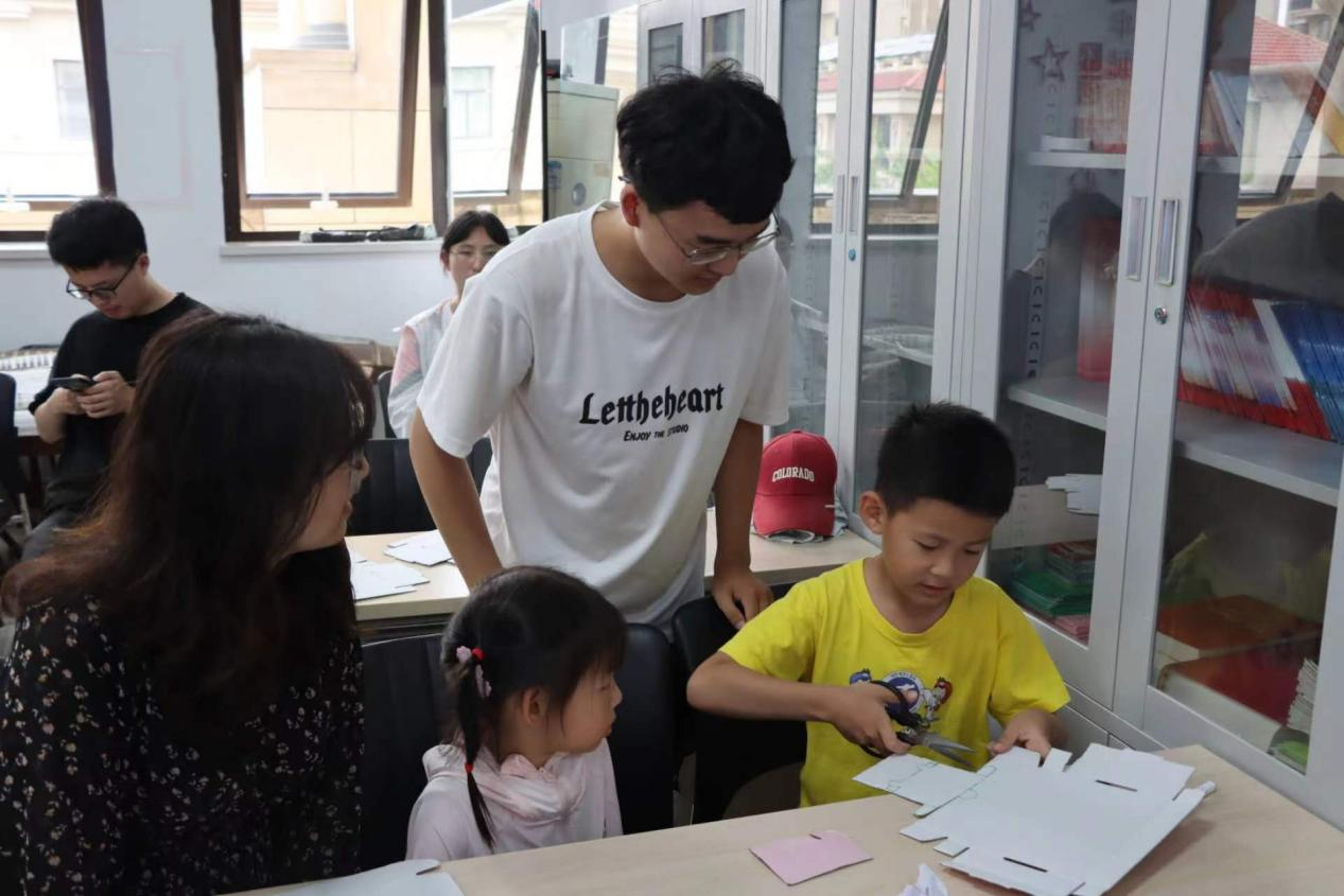 (图 6志愿者现场帮助小朋友完成手工艺品制作)