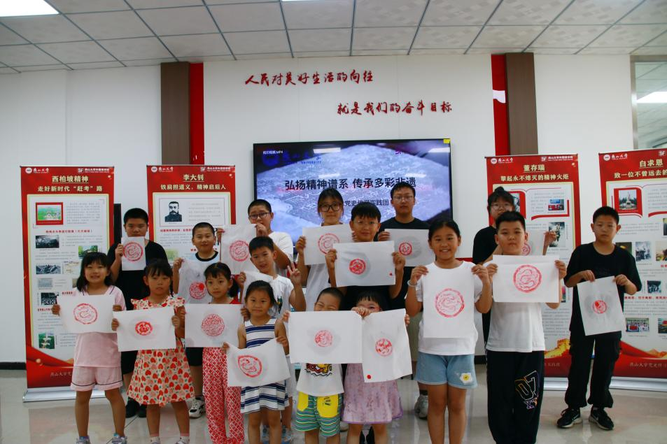 “在秦行宫遗址发掘过程中出土了大量的瓦当……”实践团邸汇然带领孩子们学习了“屋檐上的艺术”。从细致地清理瓦当,到巧妙地蒙纸敲捶、蘸墨扑打,亲手完成了精美的瓦当拓印作品,深深被拓印技艺吸引,纷纷表示“传统技艺真神奇,还想继续学习”。