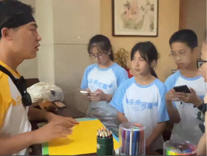 (实践团与江山中学研学成员绘制爱国手抄报)