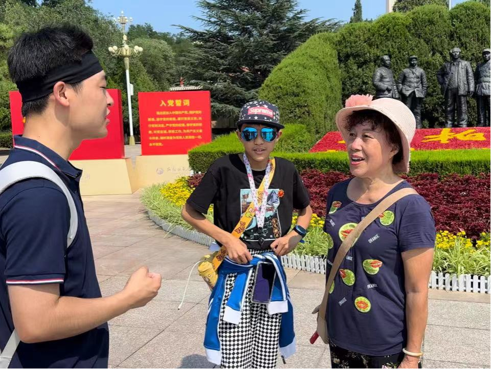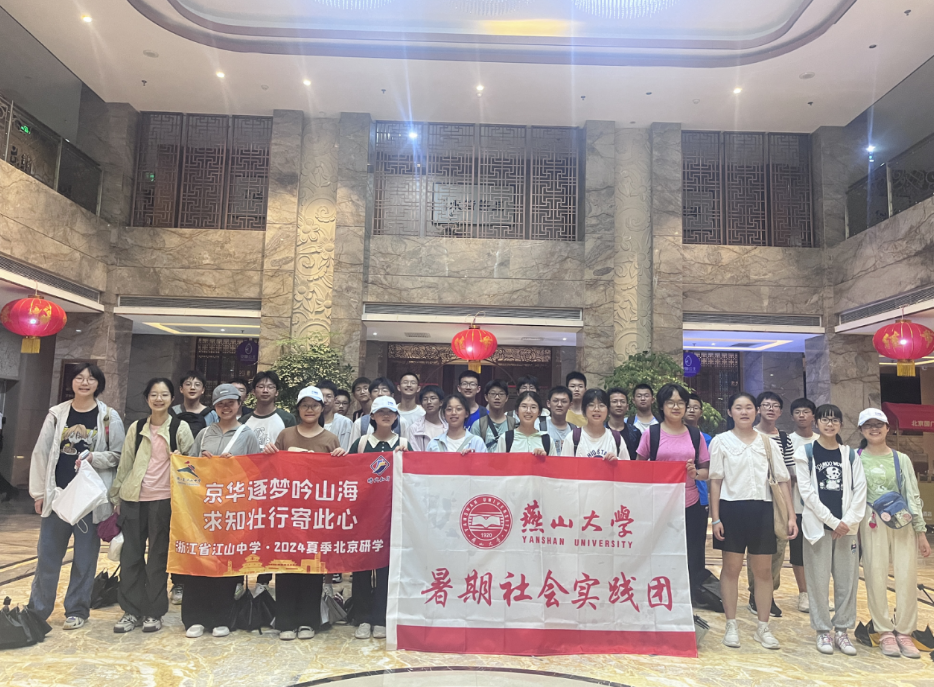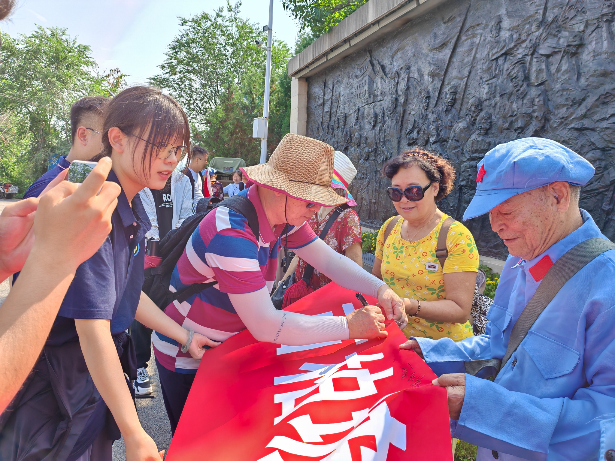 实践团在西柏坡展开了别开生面的横幅签字互动活动,邀请来往游客在横幅上写下自己对祖国和党的祝福,签上自己的姓名。笔尖轻触横幅,不仅记录下了每一位游客对历史的尊重与铭记,更激发了他们内心深处对于西柏坡精神深刻理解的共鸣。游客们彼此间交流,他们或深情讲述在纪念馆中亲眼目睹的珍贵文物、历史照片,或慷慨激昂地分享着自己今后如何践行“赶考”精神。在西柏坡之行结束后,实践团前往北京与浙江省江山中学研学成员汇合,宣传讲解西柏坡精神,号召学生坚定爱国意识,进行爱国实践。江山中学的学生们对西柏坡精神表现出了浓厚的兴趣,纷纷表示要将这种精神融入自己的学习和生活中去,为实现中华民族伟大复兴的中国梦贡献自己的力量。