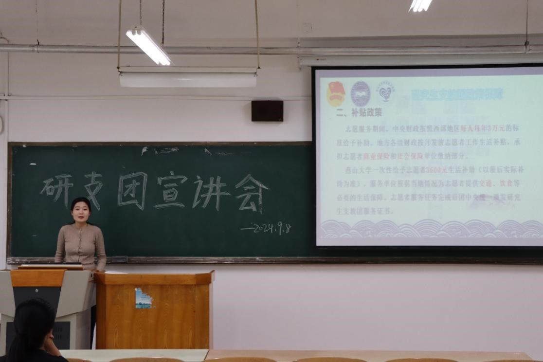 宣讲会上,宣讲人从项目介绍、政策保障、招募流程、支教服务地介绍四个方面对研究生支教团开展详尽介绍,并现场解答了同学们的许多疑问,积极调动了同学们的热情。