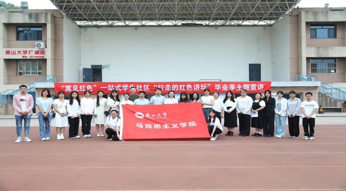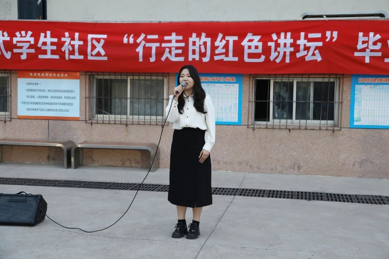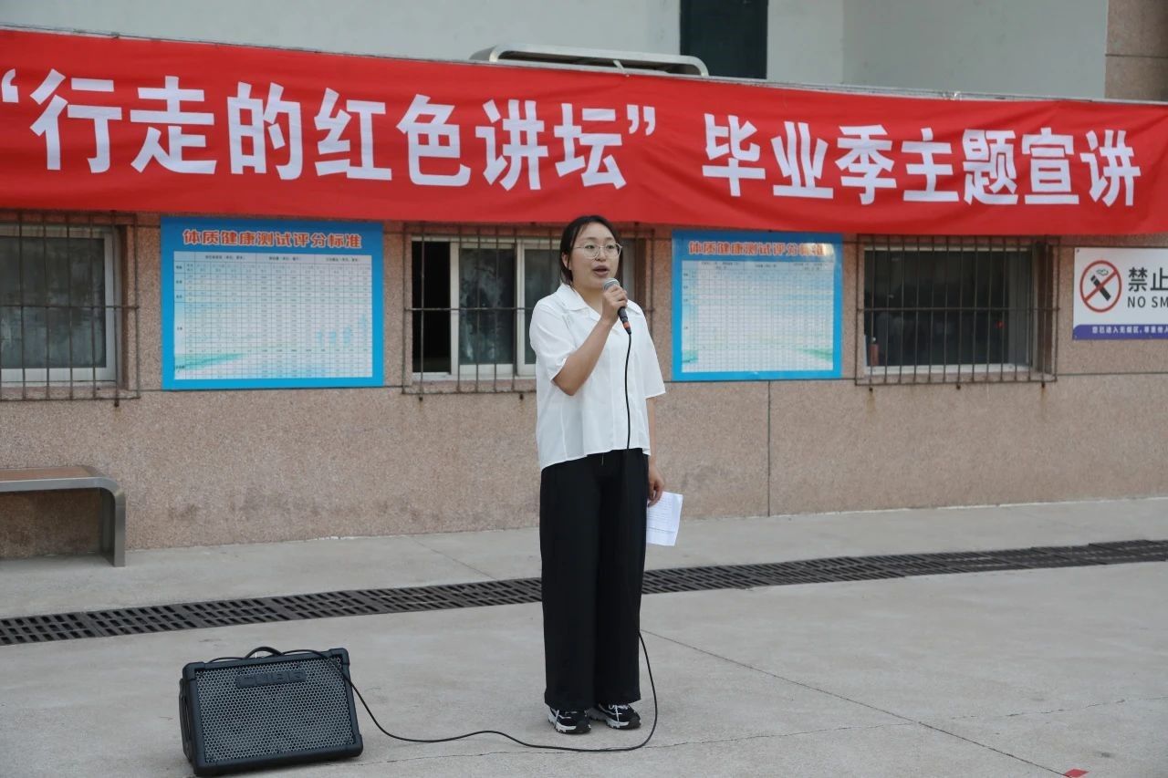 为进一步学习贯彻习近平新时代中国特色社会主义思想和党的二十大精神,深化爱国主义教育,增强学生写作、宣讲水平,6月6日,马克思主义学院在东校区第一体育场举办 “行走的红色讲坛”毕业季主题宣讲活动。学院党委书记甄红军、副书记刘遵峰、团总支书记赵瑞雪出席活动,17名学生参与宣讲。