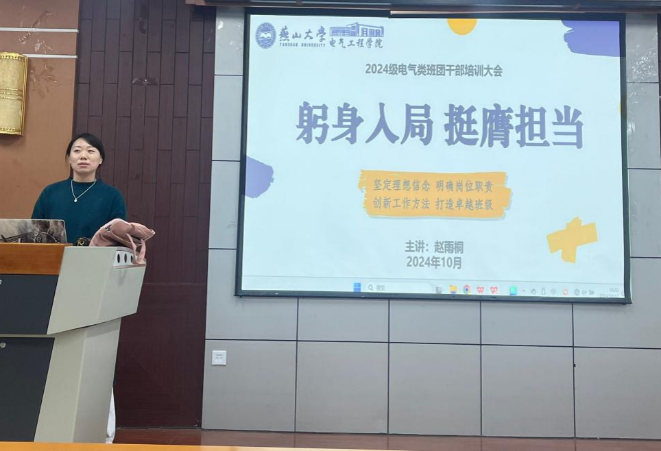 为充分发挥学生干部的骨干带头作用、提升学生干部的工作能力,引领新生创先争优、促进优良学风,10月17日下午,电气工程学院开展2024级新生班级班团干部培训。培训由学院团委副书记赵雨桐主持,2024级新生班级全体班团干部参会。