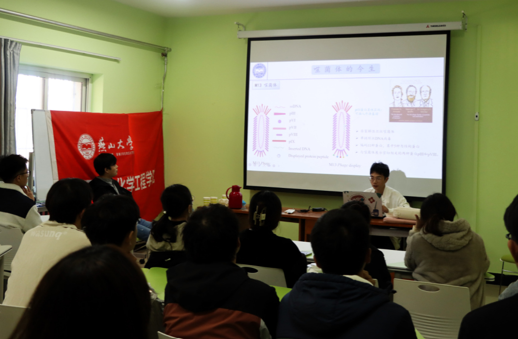 在活动中,吴启凡老师带领同学们了解了噬菌体的发展,由抗生素的滥用致使超级耐药菌的出现引出噬菌体,首先讲述了噬菌体的发现过程以及命名,紧接着为同学们讲解了噬菌体的结构以及各种性质,介绍了噬菌体复制技术以及噬菌体在生命科学方面的巨大贡献,解答了同学们对噬菌体发生靶向作用过程中的一些疑惑。最后吴老师以“心之所向,素履以往”为结束语,鼓励同学们继续努力。