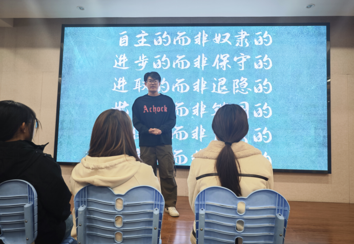 历史铸就伟大,人民创造奇迹。无数革命先烈用鲜血和生命,为我们开启了新时代的大门。目之所及,皆是人民安居乐业、幸福安康;心之所向,正是一代代中国人坚定信仰,奋力前行。为引导我院青年学生深读党史这本教科书,从历史中汲取奋进力量,学院团委创新十月团日活动形式,开展“辉煌七十五载,共谱盛世华章”特色团日活动——情景剧汇演,学院111个团支部中共有15个团支部脱颖而出,相聚于复赛舞台。复赛于10月24日13:00在西五A218开展,应邀出席的评委有学院团委书记李宁,学生兼职副书记顾昊、卢科琪,研究生会主席张潇悦、郑依琳,组织部主席武星怡。