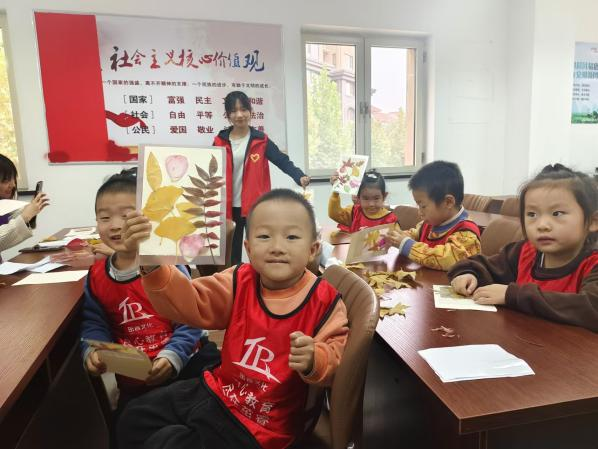孩子们有一双善于发现美的眼睛。支教部的哥哥姐姐们带领小朋友们一起到大自然中去“捡秋”,让孩子们观察季节的变化,感受自然的美好。随后,志愿者与孩子们一起开展了手工活动,并引导孩子们要爱护自然,保护环境,共建和谐、美丽的地球家园。