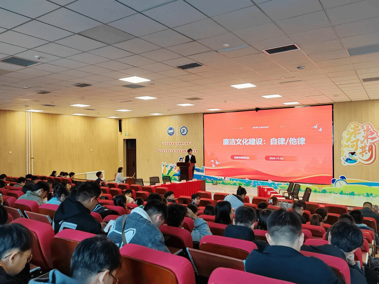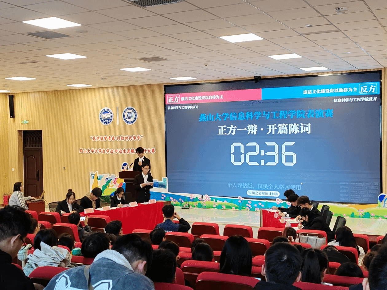 11月3日,信息学院在信息馆2号楼行知报告厅举办廉洁主题辩论赛,辩题为“廉洁文化建设应当以自律为主还是他律为主”。本次辩论赛由信息学院团委主办,学院辩论队承办,学院各学生党支部、团支部代表共240余人观看辩论赛。