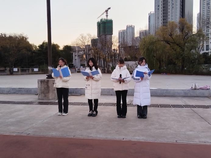 颂责之队进行了国旗下朗诵。他们以饱满的热情、真挚的诗歌朗诵,深刻诠释了当代青年所肩负责任的重大意义与深远价值。他们号召全体同学,要将对祖国的热爱之情深深扎根于心底,化作源源不断的力量源泉,以实际行动为祖国的繁荣昌盛添砖加瓦,贡献自己的青春智慧与力量。