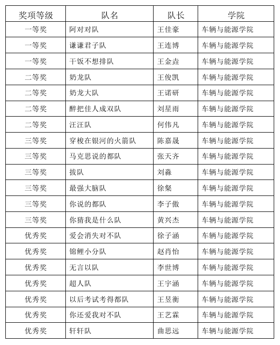 本次活动共计30个组别报名参赛,经过激烈角逐和评委们的认真评审,最终评选出一等奖3组,二等奖4组,三等奖6组,优秀奖7组,获奖队伍名单公示如下: