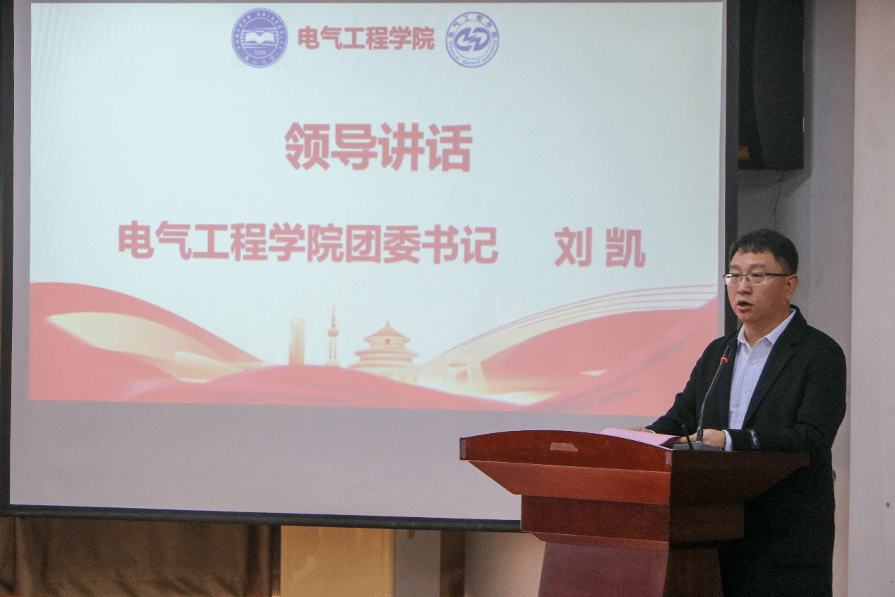 朱坤代表电气工程学院党委作题为《青春筑梦,未来可期》的讲话。朱坤充分肯定了学院学生会、研究生会等学生组织在弘扬爱党爱国精神、维护学生发展权益、繁荣校园文化发展方面作出的突出贡献。并勉励新时代电气青年要志存高远,脚踏实地,在实现大我中成就小我;广大团学骨干要勇担时代使命,扎实履职尽责,服务青年发展;学生组织要紧跟时代要求,纵深推进改革,引领同学成长。