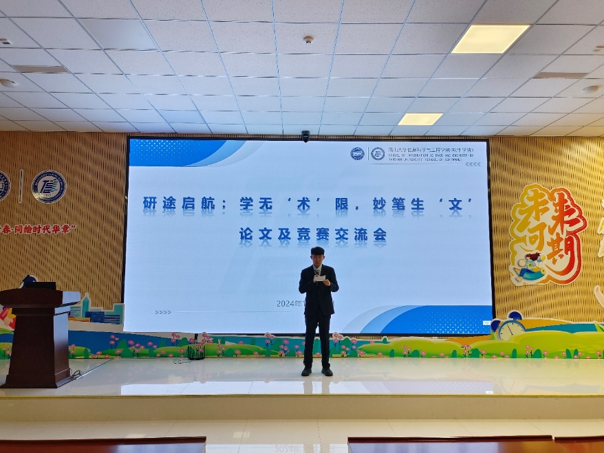 知识碰撞,思维启迪。11月17日,信息科学与工程学院研途启航系列活动之“学无‘术’限,妙笔生‘文’”分享会在行知学术报告厅举办。分享会由信息学院团委主办,学院研究生会承办,2022级信息与通信工程专业王宇奇、电子科学与技术专业王雨萌、李琳慧担任分享嘉宾,研究生会学术部潘实文同学主持分享会。