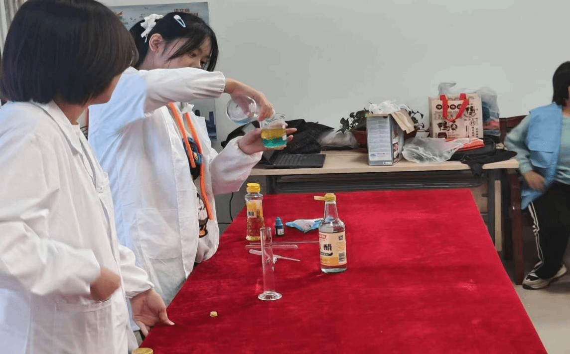 接下来青志协的志愿者们为小朋友介绍了实验室中所用到的简单科学仪器,烧杯、量筒等。并且给小朋友们展示了生活中简单的化学反应,激发了孩子们对化学的兴趣。在实验结束后,通过抢答的形式向孩子们普及了日常生活中的科学知识。