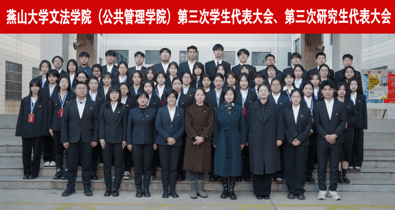 华夏复兴,仗青年挺膺担当;民族伟业,凭赤子凝心聚力。文法学院(公共管理学院)第三次学生代表大会、第三次研究生代表大会是学院全体师生认真学习贯彻党的二十届三中全会精神,在以中国式现代化全面推进中华民族伟大复兴的新征程上召开的一次凝聚力量、催人奋进的会议。学院学生会与研究生会将牢记青春使命,继续艰苦奋斗,强化权益保障,优化组织建设,务实服务同学,全力不负重托!