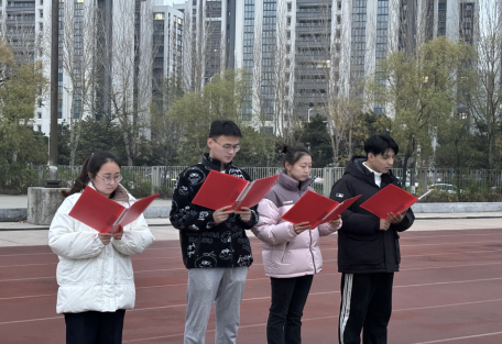之后,学生代表在国旗下朗诵,诠释了当代青年所肩负的光荣使命,抒发了“强国有我,青春担当”的铮铮誓言。