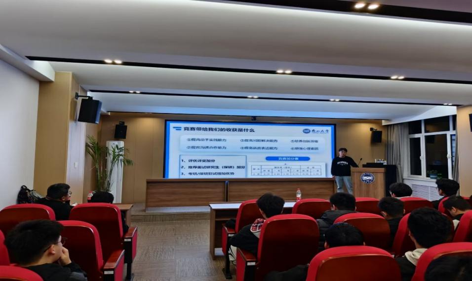 2024年11月16日18:00,车辆与能源学院于车辆馆317成功举办了“竞赛经验,携手共进——竞赛经验分享会”。本次会议邀请2021级本科生徐一诺、唐元磊、孙成航三位同学作为主讲嘉宾,为同学们做竞赛经验分享。