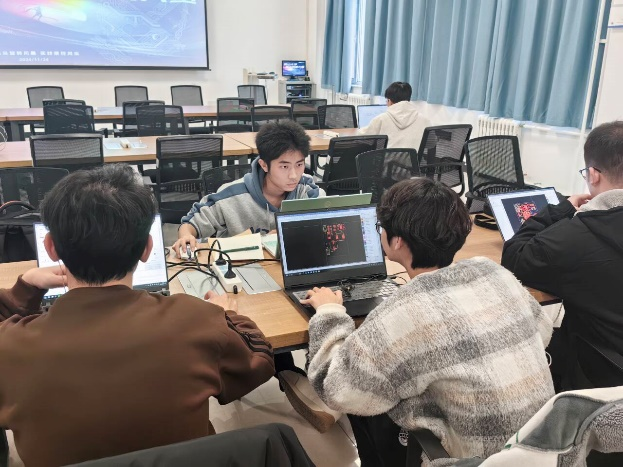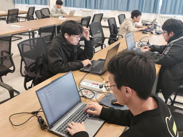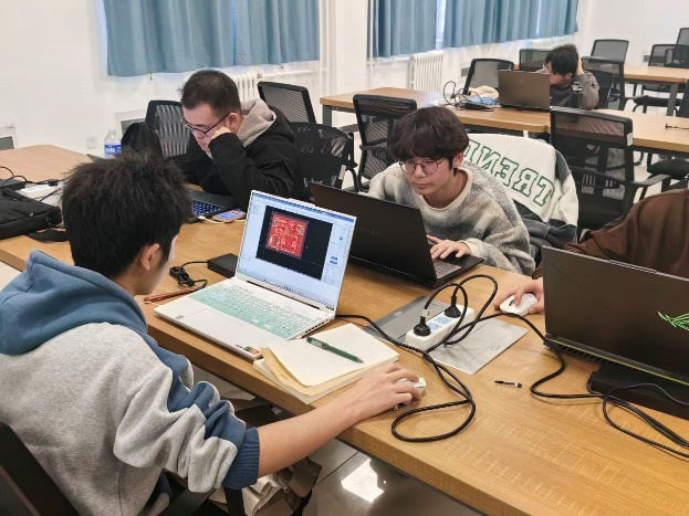 参赛同学全神贯注地投入到算法分析,策略规划,布局布线之中。一排排电脑屏幕闪烁,键盘敲击声此起彼伏,赛场弥漫着紧张而又兴奋的气息。同学们有序排列元器件,认真设计和接线,一次次调整,只为得到最满意的布线策略。参赛者都全力使出指尖的“真功夫”,在这场能力“大考”中,真实地检验了编程与设计能力的“基本功”。