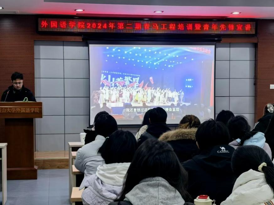 为进一步落实共青团工作要求,加强学生干部队伍建设,2024年11月23日18:30,外国语学院在人文馆416报告厅举办第二期“青马工程”培训暨青年先锋宣讲,有幸邀请到文法学院王智健同学担任宣讲嘉宾。本次培训会由外国语学院学生会成员张誉馨主持。