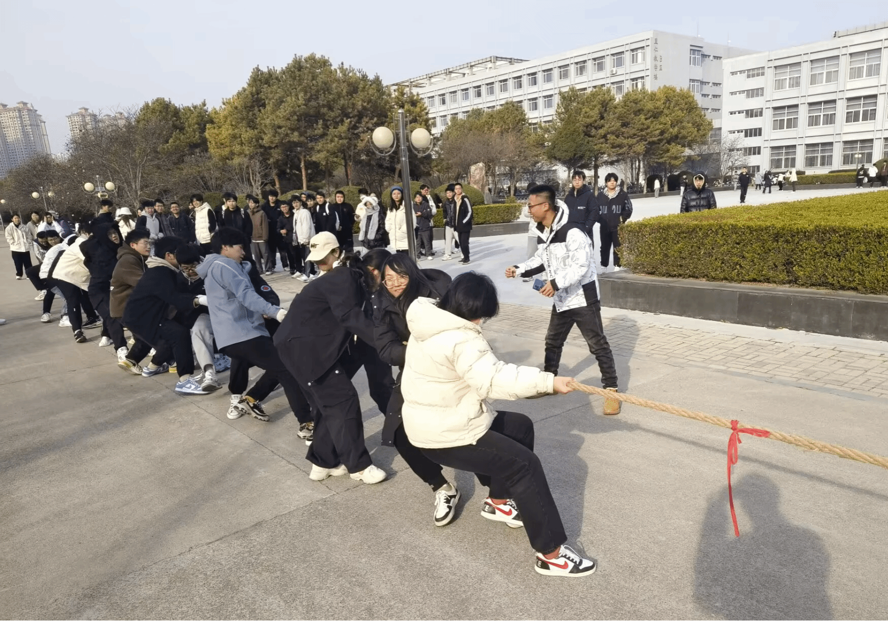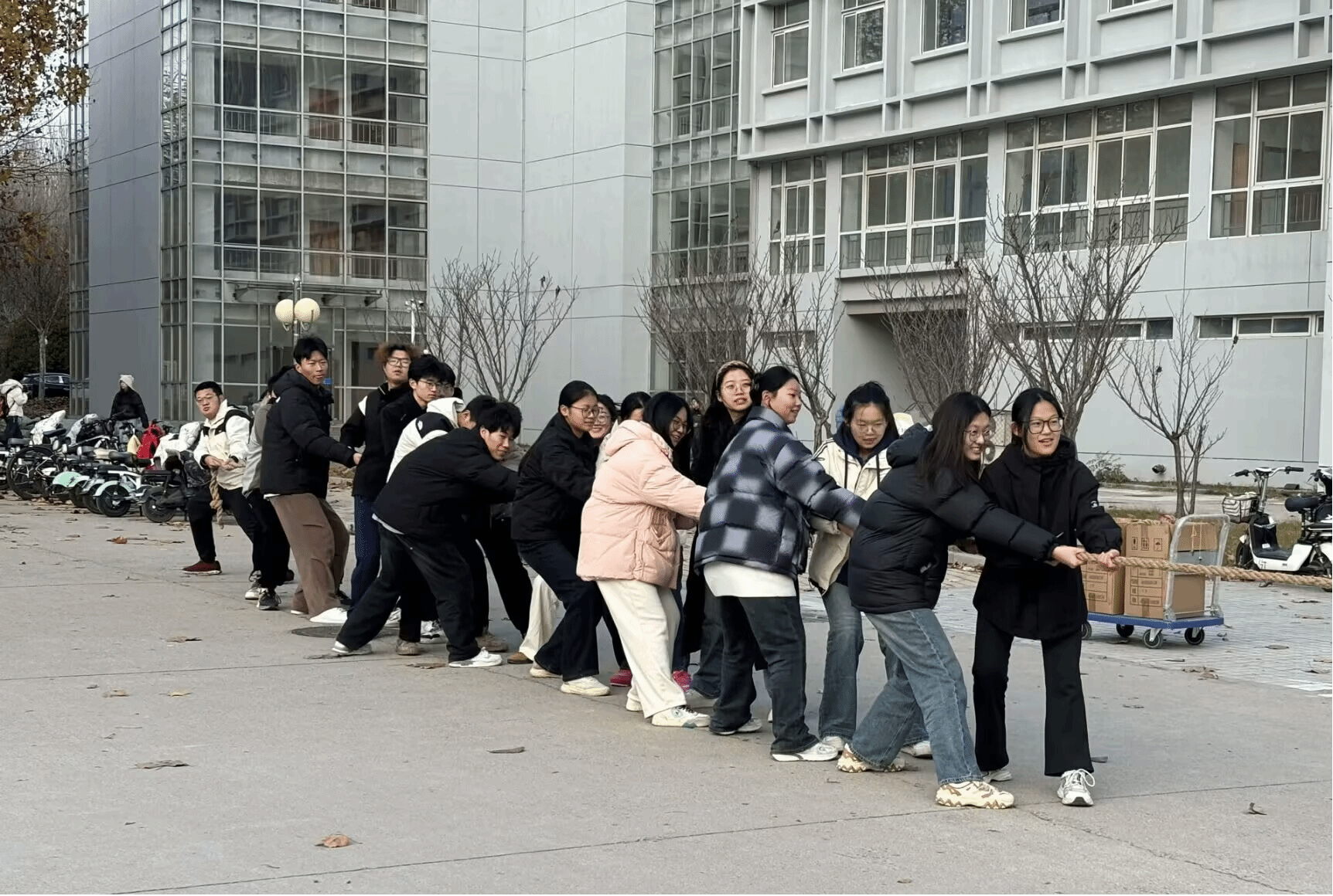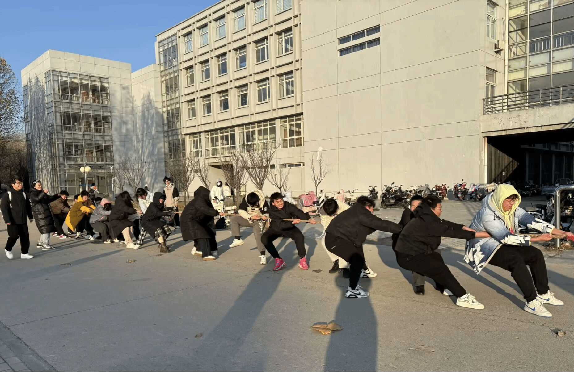 为全面贯彻落实十四届全国人大二次会议提出“关于加强全民健身运动的建议”,进一步丰富校园文化生活,提高学生身体素质与团队意识,营造积极向上的学习氛围与育人环境,2024年11月19日-28日,环境与化学工程学院在里仁实验楼和图文信息楼前举办了多场拔河比赛,2023级和2024级本科生以班级为单位参加。