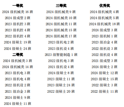此次主题团日活动中,各团支部积极参与,展现本班特色,带来了众多优秀作品。最后,经过我院评审,2024级机械类16班等7个团支部获得一等奖,2024级机械类3班等8个团支部获得二等奖,2024级机械类9班等14个团支部获得3等奖,2024级机械类4班等14个团支部获得优秀奖。