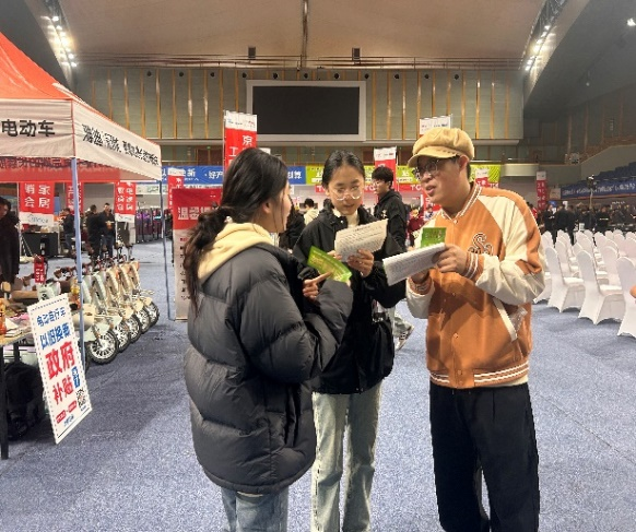 11月26日下午,青马学员与学府家园社区工作者前往奥体中心消费品展销会开展社会实践活动,活动中,青马学员们负责介绍各类消费品,细心讲解了政府新政策的具体内容,包括补贴申请流程、适用范围以及参展商品的优惠措施。通过实地服务,增强了青马学员的社会责任感与服务意识。
