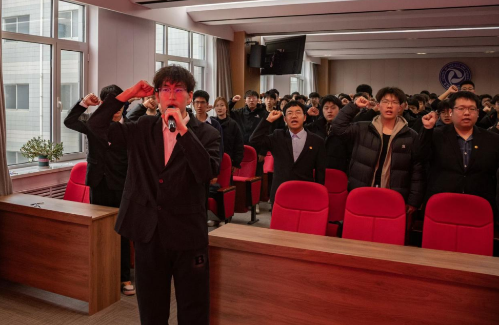 最后,全体学员在领誓人杜杰同学的带领下,面对团旗庄严地重温了入团誓词。那掷地有声的话语,回荡在现场的每一个角落,警醒着每一位学员:作为青马工程的参与者,要牢记培养使命,始终将理论学习与实践探索紧密相连。在实现中华民族伟大复兴的征程中,勇挑重担、开拓创新,用青春和热血诠释“请党放心,强国有我”的使命担当。