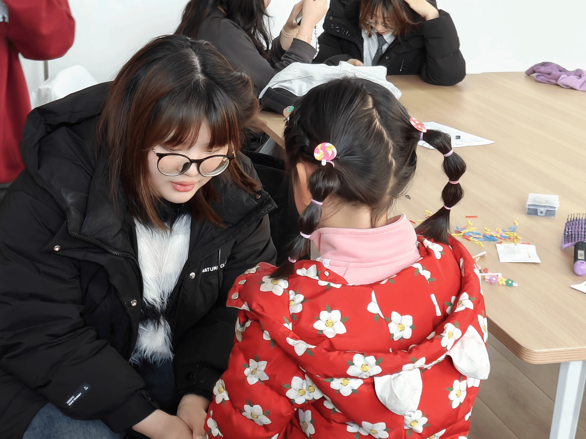 在热闹的活动现场,有一群特别的小客人们也来到了这里。五彩的发绳在指尖穿梭,俏皮又可爱的发型不一会就出现在小朋友们的头上,她们脸上绽放出的纯真灿烂的笑容,为这场女生节活动增添了一抹别样的温暖与欢乐。
