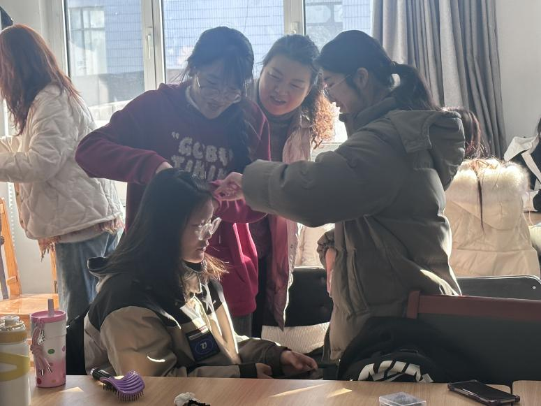 通过编发,女生们不仅发现了自己不同的风格,还体验到了动手创造的乐趣和成就感。大家在编发过程中分享生活趣事、美丽心得,一起讨论时尚潮流,感受彼此的温暖与力量,不仅增进了彼此之间的了解和友谊,更在紧张的学习之余,让女孩们放下压力,感受校园生活的美好与快乐。