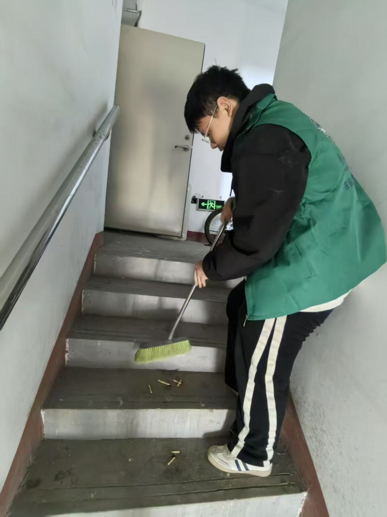 志愿者们还自发协助楼道垃圾清理,他们手持垃圾袋,穿梭在各个楼道间。部分楼道堆积着居民长期放置的杂物,志愿者们在征得同意后,帮忙整理归位。一番努力后,楼道变得整洁敞亮,居民的出行环境得到显著改善。