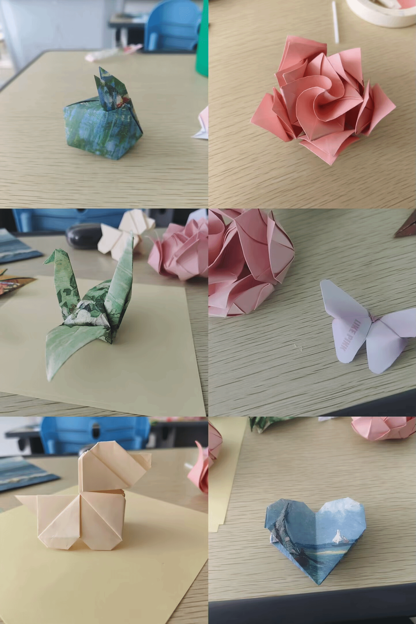 活动现场化身为创意工坊,参与者通过基础教学掌握了千纸鹤、花朵等经典折纸技法。在自由创作环节,他们使用简单的纸张,将一张张折纸变成活灵活现,栩栩如生的作品,这些作品给即将到来的春天增添了暖意。