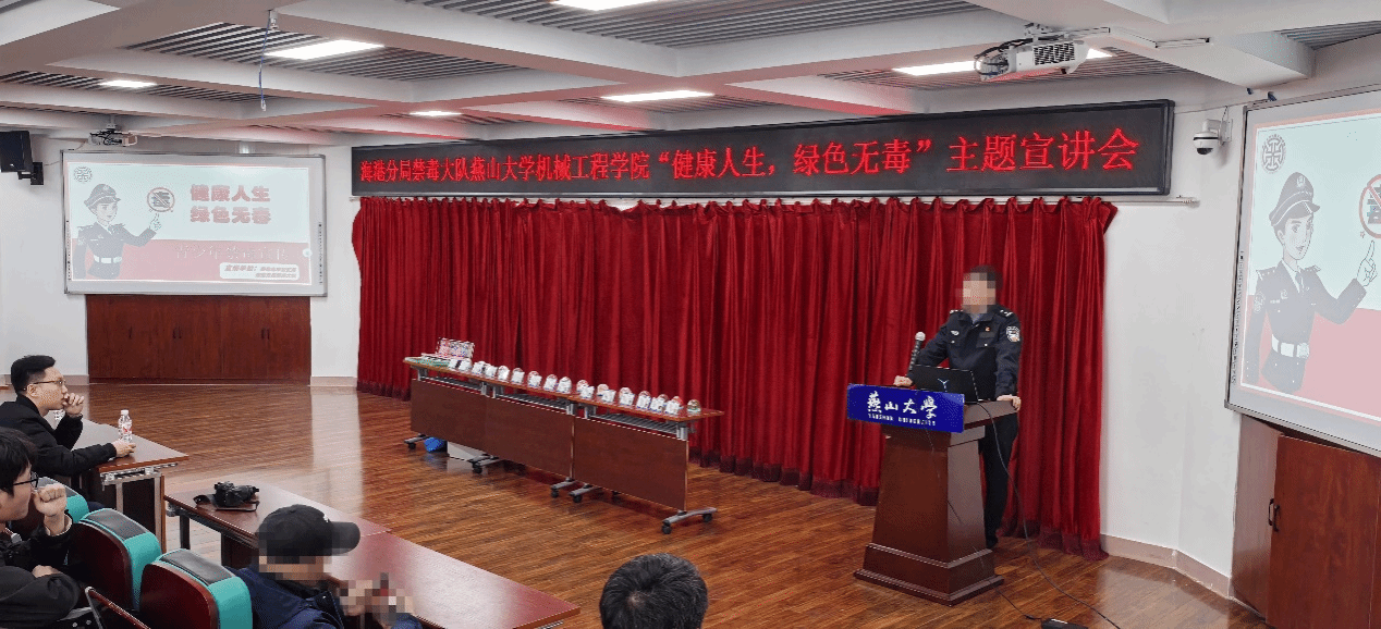 讲座中,民警通过图文并茂的PPT和真实案例视频,系统讲解了新型毒品的种类与特征。重点剖析了“奶茶”“跳跳糖”“电子烟”等隐蔽性强的新型毒品特征和“依托咪酯”等麻精药品滥用的危害,揭开毒品的“伪装面纱”。