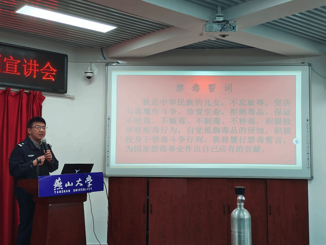 讲座特别设置了毒品仿真模型展示区,学生们近距离观察了传统毒品及新型伪装毒品的形态。民警结合实物讲解毒品对身体的伤害和对社会的危害,以触目惊心的案例警示学生“一次尝试,终生悔恨”。活动的最后,全体同学宣读了禁毒誓词,铿锵有力的誓词回荡在教室中,表达了同学们拒绝毒品的决心。