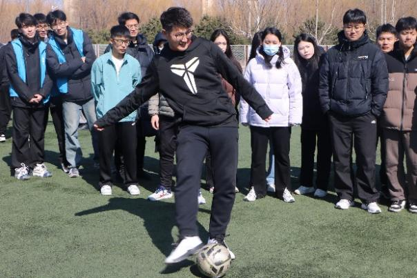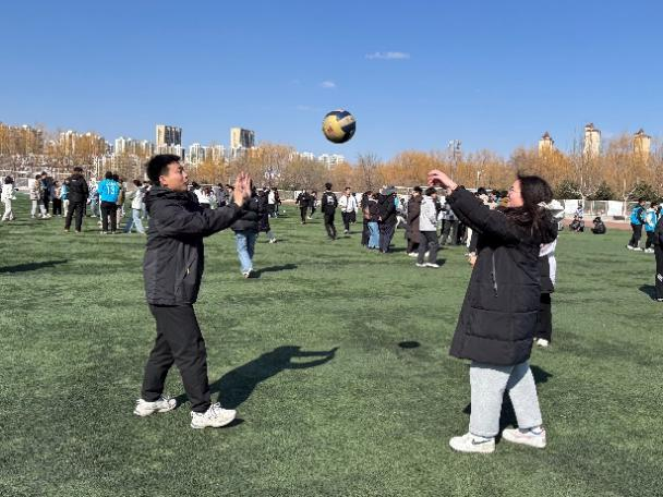 排球区上演着“默契与技巧的交响”。传球小组化作“人体矢量计算器”,或疾如闪电的平快球直切空档,或狡黠的高吊球划出完美抛物线,二人小组默契配合,引得周围同学纷纷鼓掌,清脆的掌声与排球击打声交织成了青春协奏曲。而颠球赛却是考验个体技巧的绝对领域,这里没有队友的掩护,没有战术的迂回,每个参赛者都是孤胆英雄,用身体演绎着最纯粹的力学诗篇,仿佛化身“人体稳定器”。